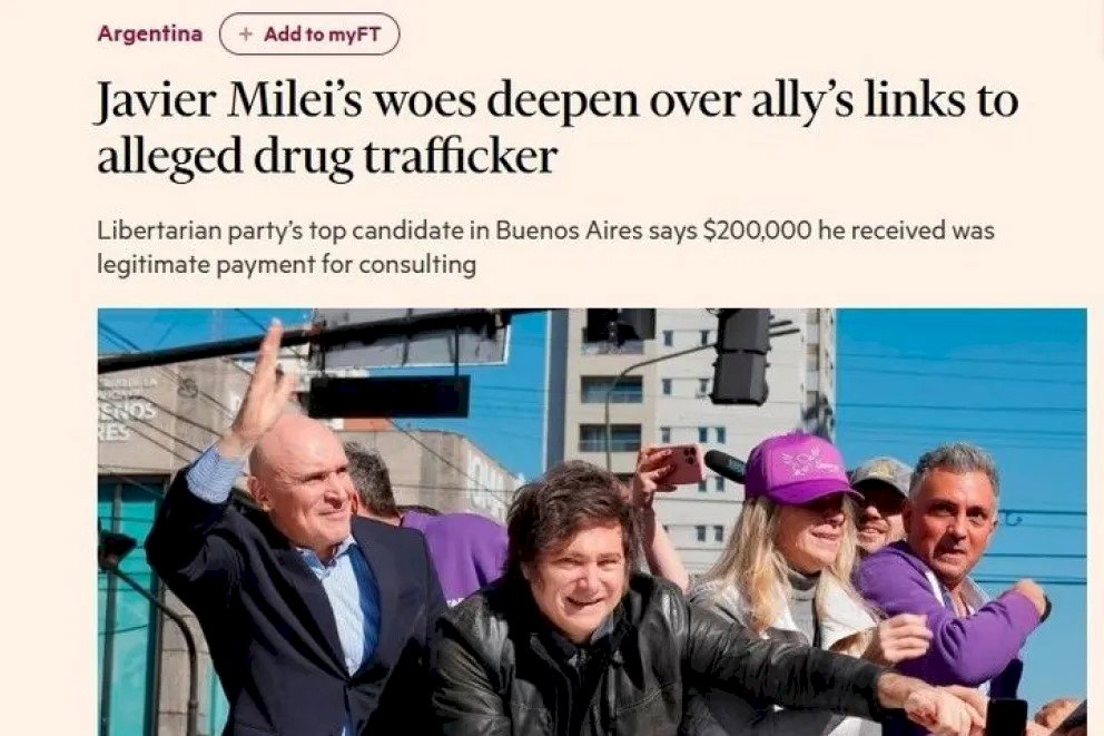 El prestigioso Financial Times volvió a poner el foco sobre la política argentina, esta vez con un artículo que advierte que el gobierno de Javier Milei enfrenta “una nueva tormenta política” tras conocerse los vínculos de su principal aliado electoral, José Luis Espert, con Federico “Fred” Machado, empresario detenido en Estados Unidos acusado de narcotráfico y fraude financiero.